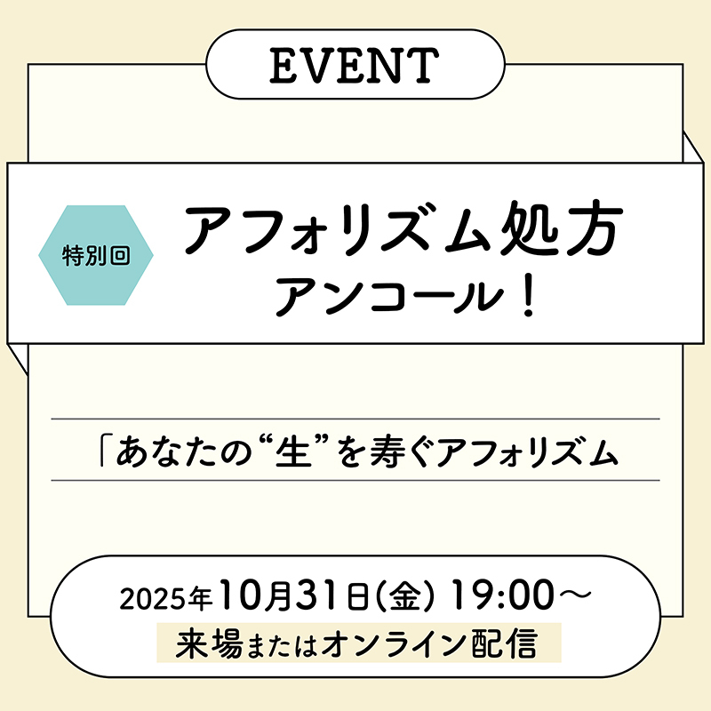 アフォリズム処方・アンコール!「あなたの〝生〟を寿ぐアフォリズム」 10/31(金)19:00~