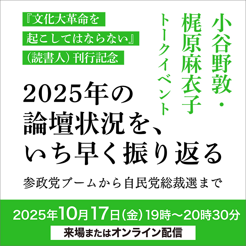 小谷野敦・梶原麻衣子トーク・イベント「2025年の論壇状況を、いち早く振り返る 10/17(金)19:00~