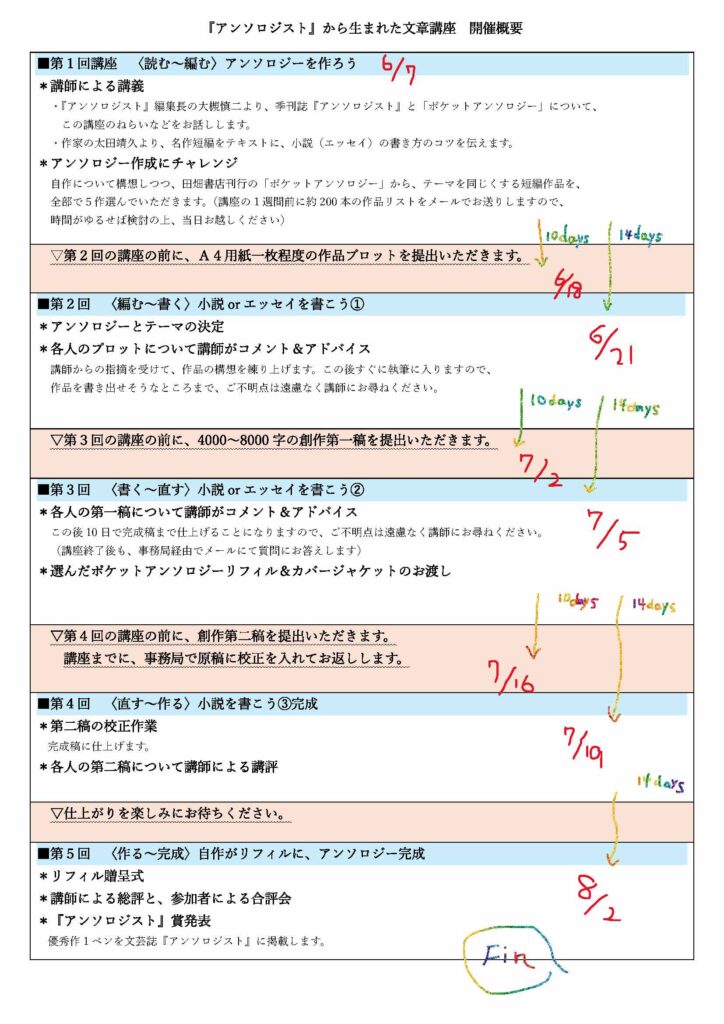 『アンソロジスト』から生まれた文章講座(全5回) 第7期