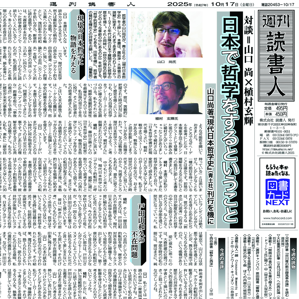 山口尚著『現代日本哲学史』(青土社)刊行を機に