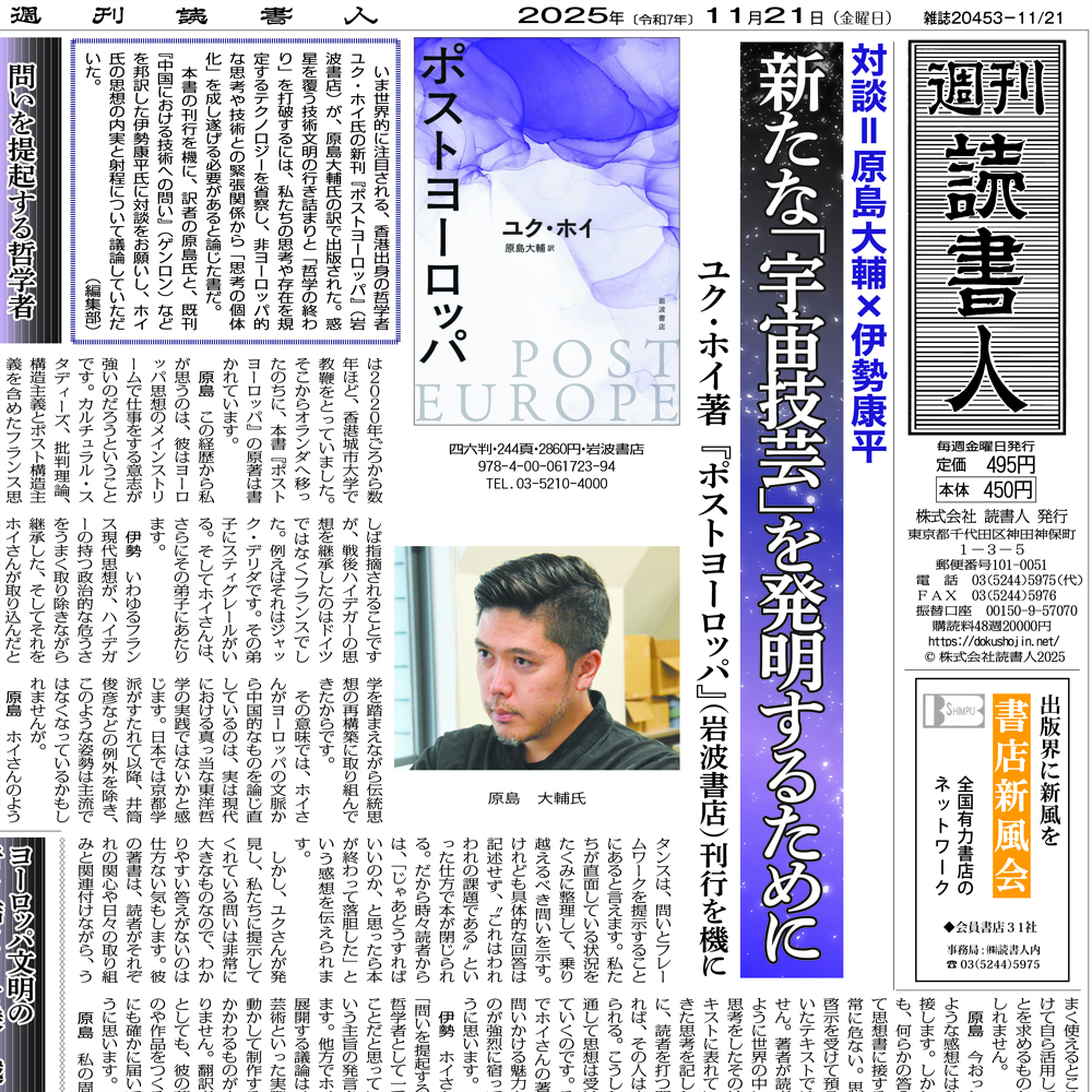 本書の刊行を機に、訳者の原島氏と、既刊『中国における技術への問い』(ゲンロン)などを邦訳した伊勢康平氏に対談をお願いし、ホイ氏の思想の内実と射程について議論していただいた。(編集部)